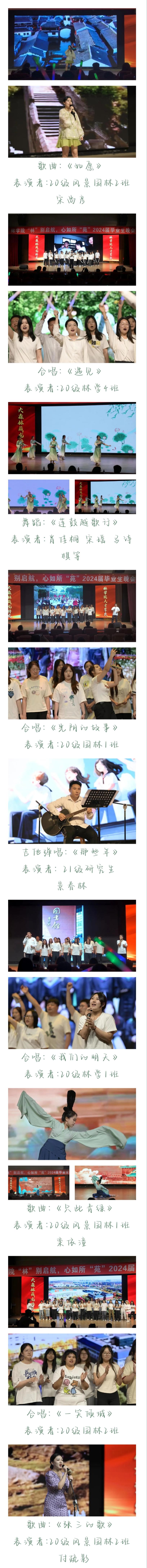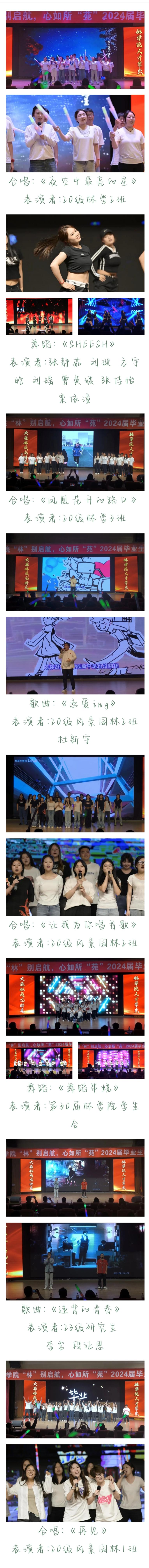 窗外蝉鸣是离别倒数的钟声,在熟悉的校园留下属于我们青春的回忆。6月7日晚18:00,林学院于沈阳农业大学艺术中心举办了“林别启航,心如所苑”毕业生晚会。林学院党委书记杨宇老师,院长王玉成老师,院党委副书记杜杰老师,副院长张智老师,副院长刘平老师,副院长高慧淋老师,20级林学三班班主任朱文旭老师,院团委书记、20级本科生辅导员胡凯老师,研究生辅导员任亚敏老师,23级本科生辅导员王秋凝老师,22级本科生辅导员王天宠老师出席本次晚会。林院师生欢聚一堂,共同观看本次晚会,度过这个难忘的夜晚。